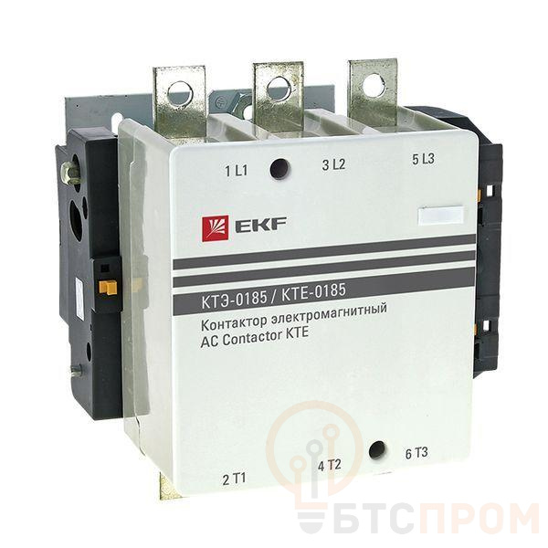 Контактор КТЭ 185А от EKF — это надежный электромагнитный аппарат, предназначенный для дистанционного управления и коммутации мощных трехфазных нагрузок в сетях переменного тока. Устройство рассчитано на номинальный ток 185 А при напряжении до 230 В и оснащено одной нормально разомкнутой (1НО) силовой парой контактов.