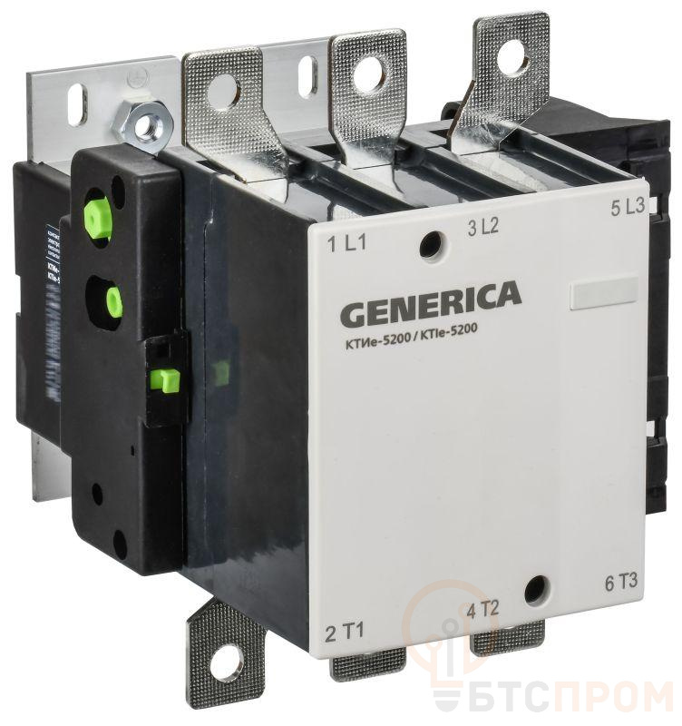 Контактор КТИе-5200 200А 230В/АС3 GENERICA (арт. KKTE50-200-230-10) — это современный электромагнитный аппарат, предназначенный для дистанционного управления мощными трехфазными электродвигателями и другими нагрузками в цепях переменного тока.