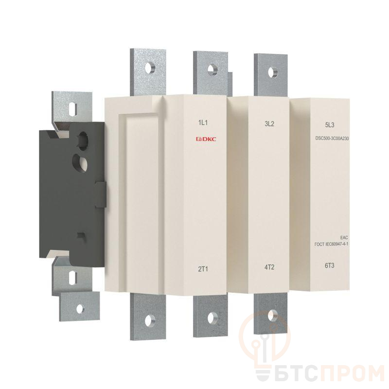 Электромагнитный контактор DSC800-3C00A230 800А 400 кВт (AC3) с катушкой 220 В AC для коммутации асинхронных двигателей, частотных приводов и других высокоиндуктивных нагрузок (категория применения АС-3), а также для работы в тяжелых режимах, таких как пуск и торможение противовключением электродвигателей с короткозамкнутым ротором (АС-4).