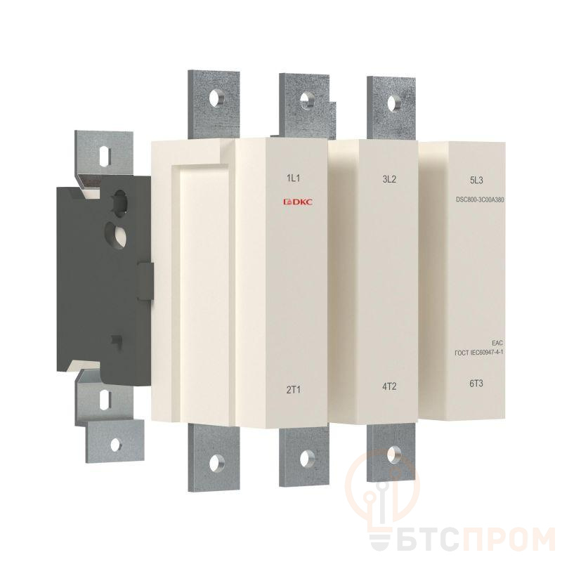 Электромагнитный контактор DSC800-3C00A380 800 А 400кВт (AC3) с катушкой 380 В AC для коммутации асинхронных двигателей, частотных приводов и других высокоиндуктивных нагрузок (категория применения АС-3), а также для работы в тяжелых режимах, таких как пуск и торможение противовключением электродвигателей с короткозамкнутым ротором (АС-4).