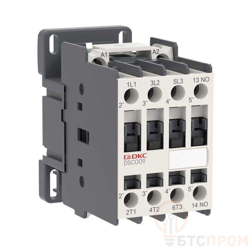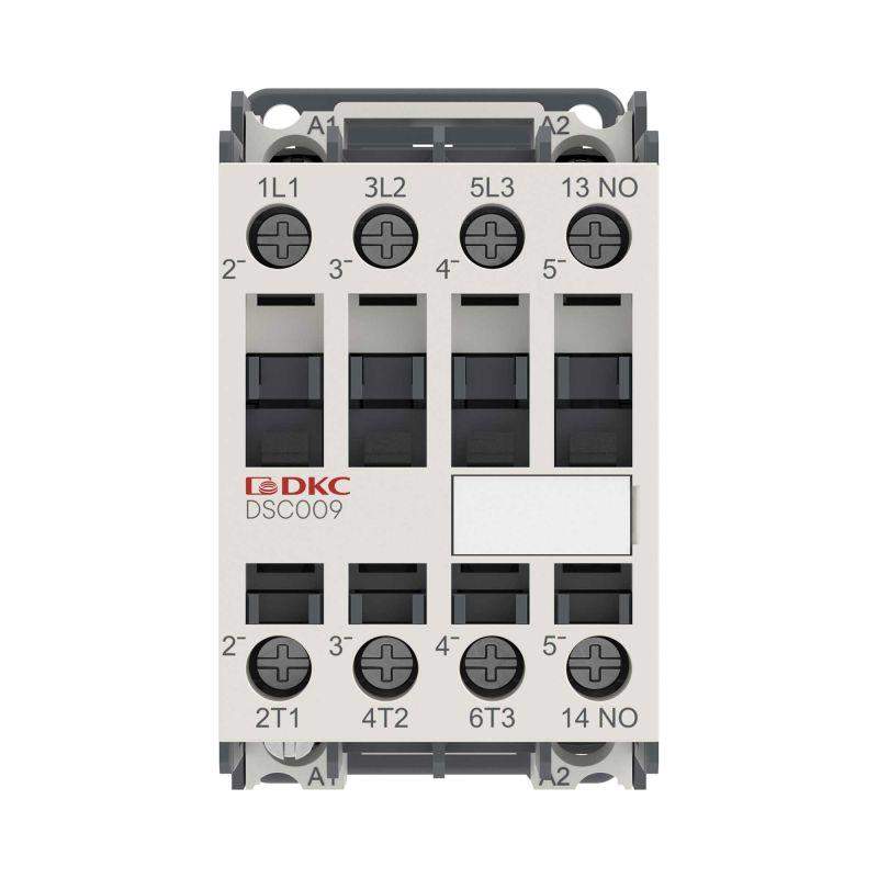 Электромагнитный контактор "YON" DSC009 9 A 4 кВт AC3 3P кат.220 В AC 1НО для коммутации асинхронных двигателей, частотных приводов и других высокоиндуктивных нагрузок (категория применения АС-3), а также для работы в тяжелых режимах, таких как пуск и торможение противовключением электродвигателей с короткозамкнутым ротором (АС-4).