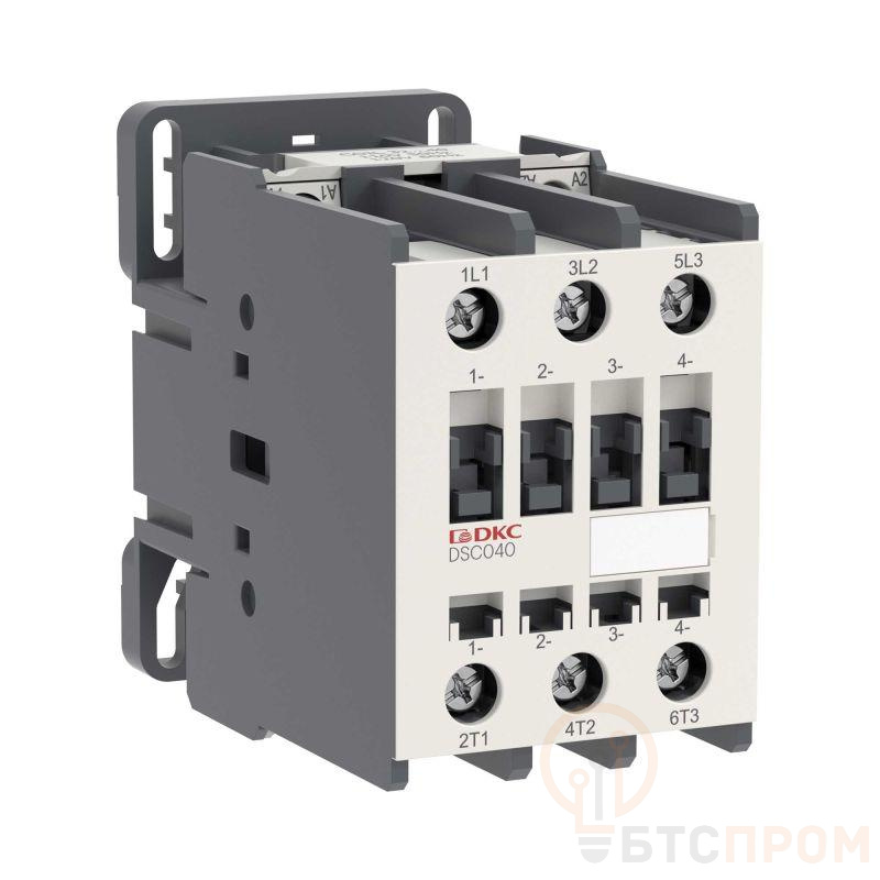 Электромагнитный контактор "YON" DSC040 40 A 18,5 кВт AC3 3P кат.110 В AC для коммутации асинхронных двигателей, частотных приводов и других высокоиндуктивных нагрузок (категория применения АС-3), а также для работы в тяжелых режимах, таких как пуск и торможение противовключением электродвигателей с короткозамкнутым ротором (АС-4).