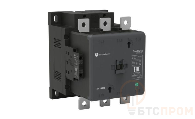 Контактор серии SystemePact MC1G на номинальный ток 400 А, 3P, 2НО+2НЗ; напряжение управления – 100…250 В пер./пост. тока; защита от просадок напряжения от 0,7 до 1,2 Us; крепеж – на монтажной плате. Контакторы серии SystemePact MC1G разработаны для управления двигателями различных типов, а также насосами, лифтов и системами вентиляции. Они имеют увеличенный электрический и механический ресурс; могут оснащаться дополнительными контактами, тепловыми реле, механическими блокировками.