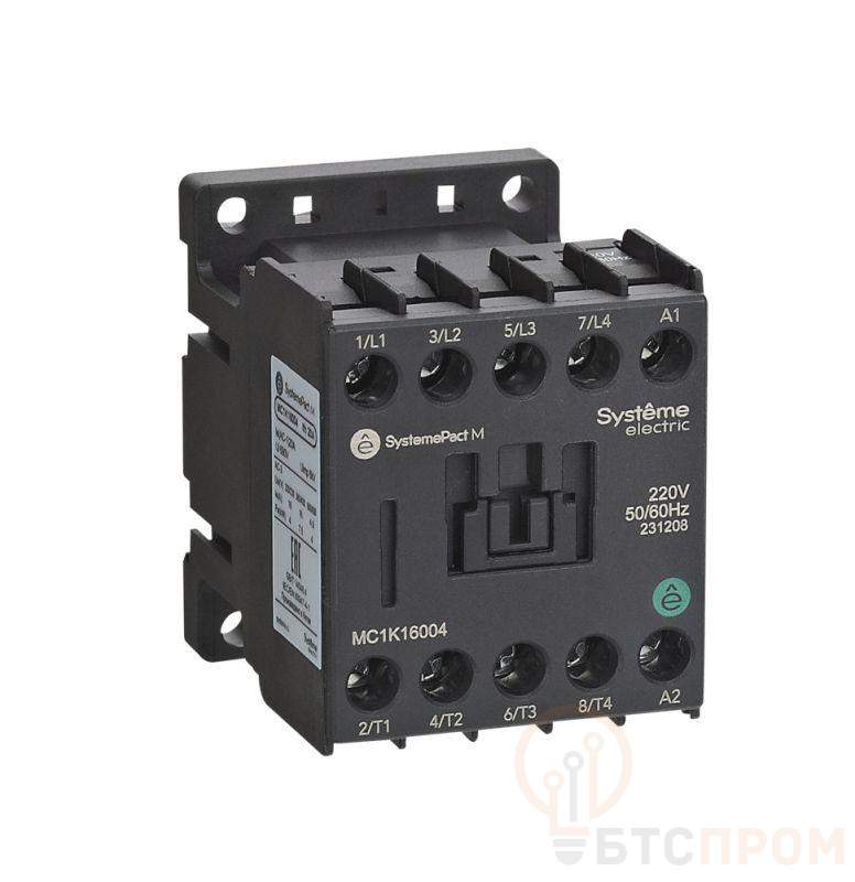 Контактор серии SystemePact MC1K для сетей переменного тока, номинальный ток – 6 А, 4P(2НО+2НЗ), напряжение управления – 110 В пер.тока, монтаж – на DIN-рейке или винтами на монтажной плате. Контакторы серии MC1K предназначены для управления не индуктивной или слабо индуктивной нагрузкой (AC-1), а также для применения в простых системах автоматизации.