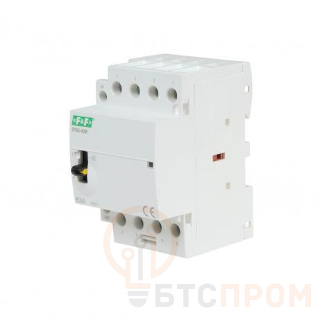 Контактор серии "ST" Предназначен для коммутации электрических цепей повышенной мощности. Наличие переключателя на лицевой панели позволяет вручную управлять контактами контактора (независимо от наличия напряжения питания на катушке). Особенности - Ручное управление - Питание катушки от сети переменного тока Область применения Применяется для автоматизации и управления различных технологических процессов, в том числе в системах освещения, кондиционирования, вентиляции и т.д. Принцип работы Принцип работы контактора зависит от положения переключателя режима работы: Положение «I» При отсутствии напряжения питания на катушке контакты контактора замкнуты. Подача напряжения питание на катушку автоматически переводит переключатель в положение "auto" и контактор работает в автоматическом режиме. Чтобы зафиксировать контакты в замкнутом состоянии независимо от наличия напряжения питания контактора необходимо в положении „I” переместить желтый рычаг блокировки влево. Рабочее состояние контактора сигнализируется поднятым красным флажком на лицевой панели. Положение «auto» Подача напряжения питания на катушку контактора приводит к замыканию контактов. После отключения напряжения питания контакты возвращаются в своё первоначальное положение. Положение «О» Контакты контактора остаются разомкнутыми независимо от наличия напряжения питания. напряжение питания 230 В АС максимальный ток нагрузки - 63 А; контакты - 4NO;