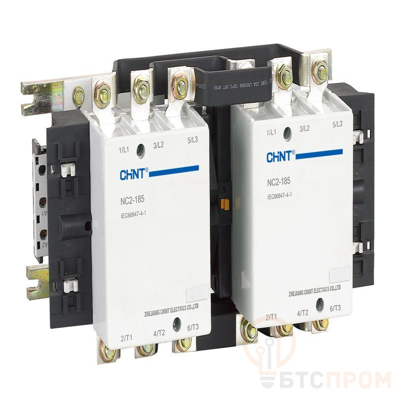 Контакторы NC2 - это серия силовых коммутационных аппаратов от компании CHINT. Они рассчитаны на более серьезные нагрузки и коммутацию более мощных потребителей электроэнергии в сравнении с другими модельными линейками контакторов CHINT. Серия NC2 охватывает номинальные токи от 115А до 800А. Данный модельный ряд не имеет встроенных дополнительных контактов. Но в конструкции изделия предусмотрены специальные монтажные гнезда для их установки. Совместно с контактором можно использовать такие дополнительные узлы как вспомогательные контакты, приставка с выдержкой времени, механическая блокировка и др. Конструкция силовых контакторов NC2 включает основание, контактную систему, магнитную систему и дугогасительную камеру. Для контактной системы данной серии контакторов характерен двойной разрыв цепи. Магнитная система отвечает непосредственно за включение и отключение. Конструктивно она выполнена единым блоком с катушкой управления. Такой блок легко извлекается из основания, что делает обслуживание и ремонт более простым и оперативным. Что касается материалов, то корпус контактора выполнен из негорючего пластика, а для производства нижней части основания использован алюминиевый профиль. Серия NC2 отличается также малой зоной ионизации выхлопных газов. Это позволяет монтировать даже контакторы большой мощности без изменения расстояний до других электротехнических устройств. Установка предполагает как горизонтальный, так и вертикальный монтаж шин. Еще одна важная особеность серии - это наличие моделей реверсивных контакторов в заводском исполнении.