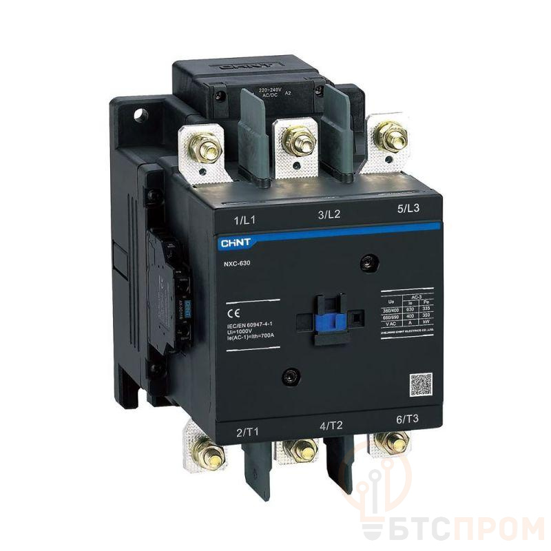 Контактор NXC-630 от CHINT — это мощное и надечное электромеханическое устройство, предназначенное для коммутации силовых цепей. Номинальный ток составляет 630 А, что делает его идеальным для управления мощными нагрузками в промышленных сетях. Рабочее напряжение катушки управления — 110-127В переменного или постоянного тока, что обеспечивает универсальность подключения. Коммутационная схема представлена двумя нормально разомкнутыми (2НО) и двумя нормально замкнутыми (2НЗ) контактами, обеспечивая гибкость в построении систем управления.