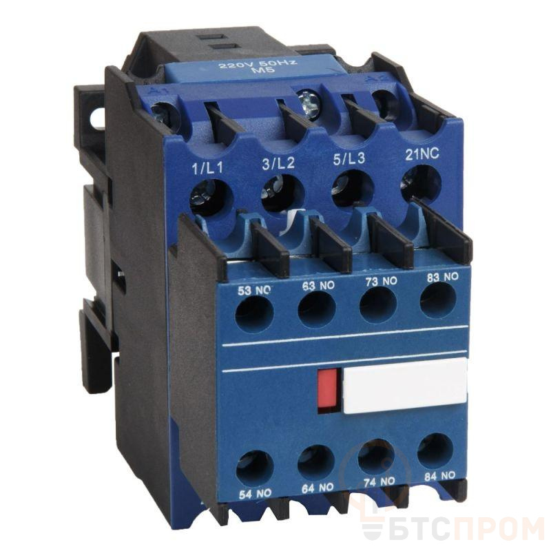 Контактор с катушкой управления переменным током напряжением 220 В на номинальный ток 25 А.