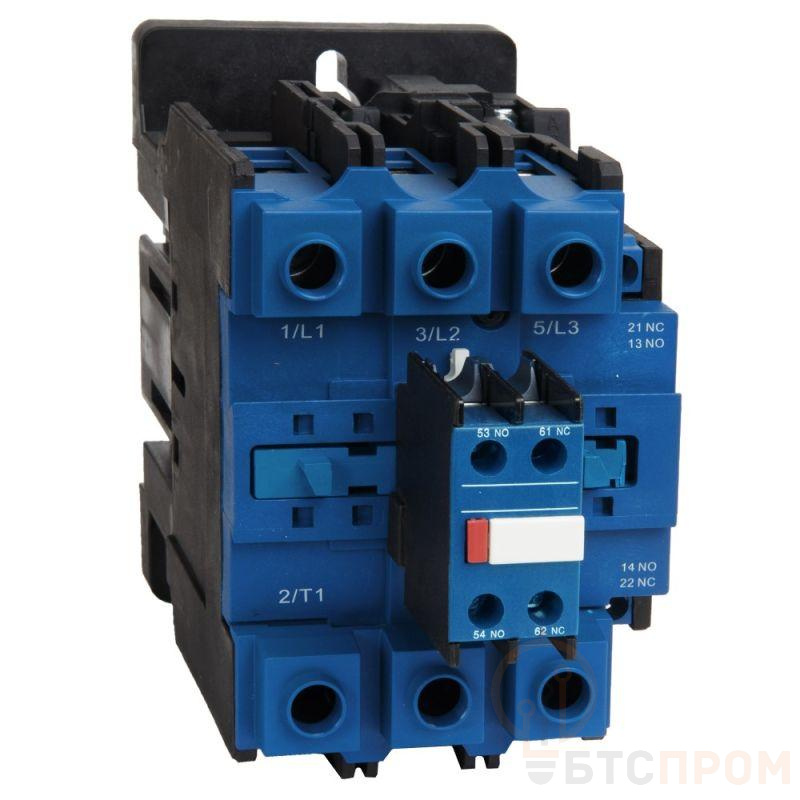 Контактор с катушкой управления переменным током напряжением 220 В на номинальный ток 63 А.
