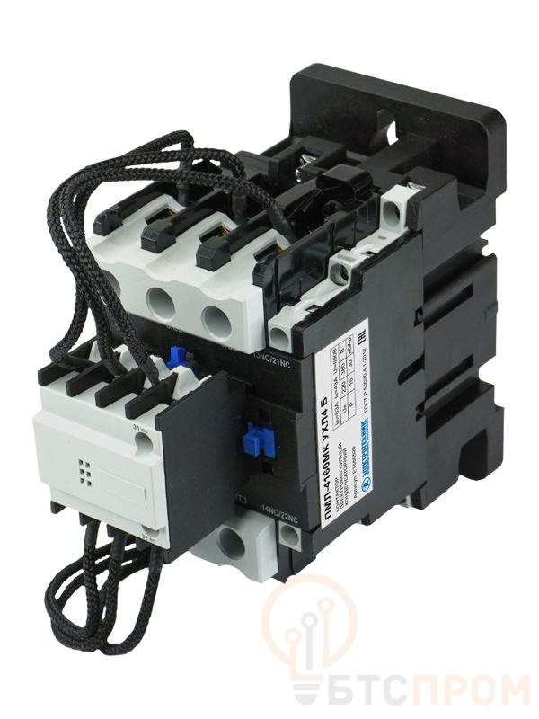 Контактор ПМЛ-4160МК УХЛ4 Б от производителя "Электротехник" — это современный трехполюсный электромагнитный аппарат, предназначенный для дистанционного управления и коммутации силовых цепей. Устройство рассчитано на номинальный ток 63 А и рабочее напряжение до 660 В. Коммутационная способность составляет 30 кВАр, что делает его идеальным для работы с мощными индуктивными нагрузками, такими как асинхронные электродвигатели.