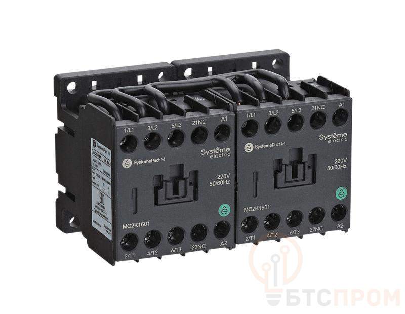 Реверсивный контактор серии SystemePact MC2K для сетей переменного тока, номинальный ток – 9 А, 3P, 1НО, напряжение управления – 36 В пер.тока, монтаж – на DIN-рейке или винтами на монтажной плате. Реверсивные контакторы серии MC2K предназначены для управления двигателями, а также для применения в простых системах автоматизации.
