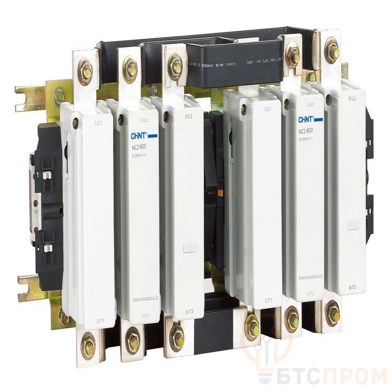 Контакторы NC2 - это серия силовых коммутационных аппаратов от компании CHINT. Они рассчитаны на более серьезные нагрузки и коммутацию более мощных потребителей электроэнергии в сравнении с другими модельными линейками контакторов CHINT. Серия NC2 охватывает номинальные токи от 115А до 800А. Данный модельный ряд не имеет встроенных дополнительных контактов. Но в конструкции изделия предусмотрены специальные монтажные гнезда для их установки. Совместно с контактором можно использовать такие дополнительные узлы как вспомогательные контакты, приставка с выдержкой времени, механическая блокировка и др. Конструкция силовых контакторов NC2 включает основание, контактную систему, магнитную систему и дугогасительную камеру. Для контактной системы данной серии контакторов характерен двойной разрыв цепи. Магнитная система отвечает непосредственно за включение и отключение. Конструктивно она выполнена единым блоком с катушкой управления. Такой блок легко извлекается из основания, что делает обслуживание и ремонт более простым и оперативным. Что касается материалов, то корпус контактора выполнен из негорючего пластика, а для производства нижней части основания использован алюминиевый профиль. Серия NC2 отличается также малой зоной ионизации выхлопных газов. Это позволяет монтировать даже контакторы большой мощности без изменения расстояний до других электротехнических устройств. Установка предполагает как горизонтальный, так и вертикальный монтаж шин. Еще одна важная особеность серии - это наличие моделей реверсивных контакторов в заводском исполнении.