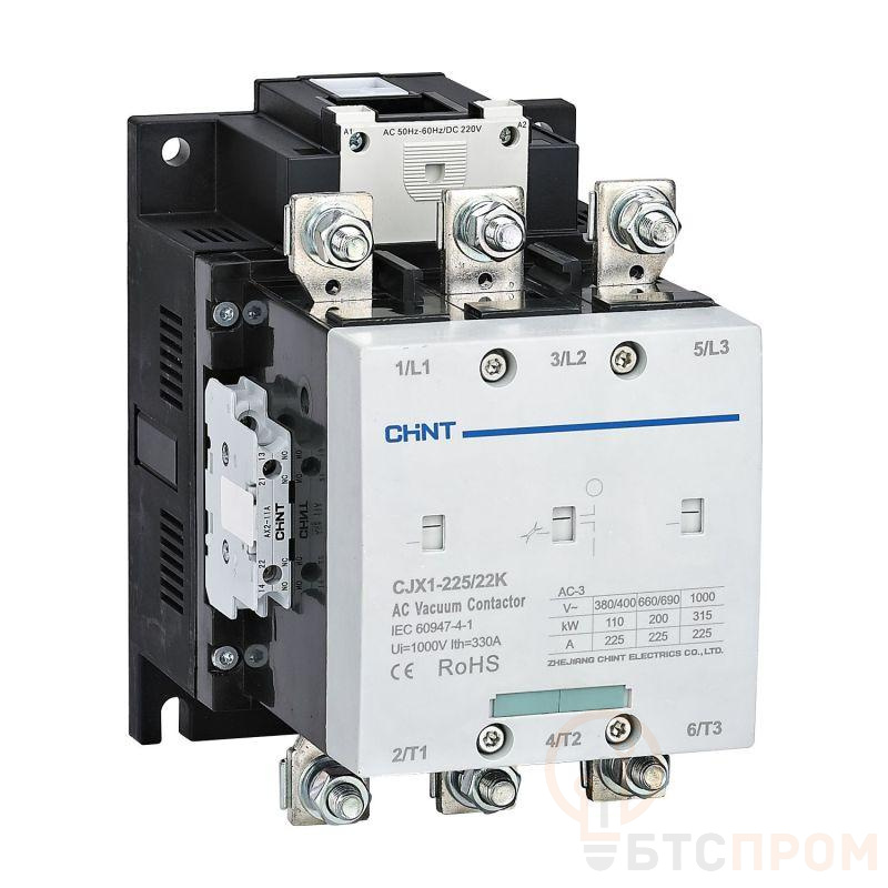 Вакуумный контактор CJX1-225/22K от CHINT — это современный коммутационный аппарат, предназначенный для дистанционного управления мощными трехфазными электродвигателями и другими нагрузками в сетях переменного тока.