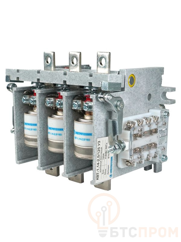 Контакторы вакуумные серии КВТ открытого исполнения с естественным воздушным охлаждением, встраиваемые в комплектные устройства, предназначены для использования в пускателях, станциях управления, для коммутации токов включения и отключения асинхронных электродвигателей с короткозамкнутым ротором и других приёмников электроэнергии в системах дистанционного управления электроприводами с тяжёлым режимом работы в цепи переменного тока 50-60 Гц, напряжением до 1140 В. Благодаря высокой электрической прочности вакуумного промежутка и отсутствию среды, поддерживающей горение дуги, электрическая дуга распадается и гаснет. * высокий коммутационный и энергетический ресурс; * высокая кратковременная нагрузочная способность для тяжелых пусков; * отсутствие открытой электрической дуги и продуктов горения, * высокое быстродействие; * максимальная пожаро- и взрывобезопасность; * низкий уровень шумов во время эксплуатации.
