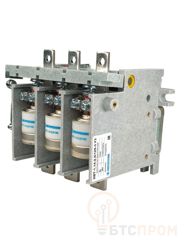 Контакторы вакуумные серии КВТ открытого исполнения с естественным воздушным охлаждением, встраиваемые в комплектные устройства, предназначены для использования в пускателях, станциях управления, для коммутации токов включения и отключения асинхронных электродвигателей с короткозамкнутым ротором и других приёмников электроэнергии в системах дистанционного управления электроприводами с тяжёлым режимом работы в цепи переменного тока 50-60 Гц, напряжением до 1140 В. Благодаря высокой электрической прочности вакуумного промежутка и отсутствию среды, поддерживающей горение дуги, электрическая дуга распадается и гаснет. * высокий коммутационный и энергетический ресурс; * высокая кратковременная нагрузочная способность для тяжелых пусков; * отсутствие открытой электрической дуги и продуктов горения, * высокое быстродействие; * максимальная пожаро- и взрывобезопасность; * низкий уровень шумов во время эксплуатации.