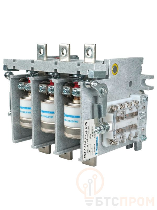 Контакторы вакуумные серии КВТ открытого исполнения с естественным воздушным охлаждением, встраиваемые в комплектные устройства, предназначены для использования в пускателях, станциях управления, для коммутации токов включения и отключения асинхронных электродвигателей с короткозамкнутым ротором и других приёмников электроэнергии в системах дистанционного управления электроприводами с тяжёлым режимом работы в цепи переменного тока 50-60 Гц, напряжением до 1140 В. Благодаря высокой электрической прочности вакуумного промежутка и отсутствию среды, поддерживающей горение дуги, электрическая дуга распадается и гаснет. * высокий коммутационный и энергетический ресурс; * высокая кратковременная нагрузочная способность для тяжелых пусков; * отсутствие открытой электрической дуги и продуктов горения, * высокое быстродействие; * максимальная пожаро- и взрывобезопасность; * низкий уровень шумов во время эксплуатации.