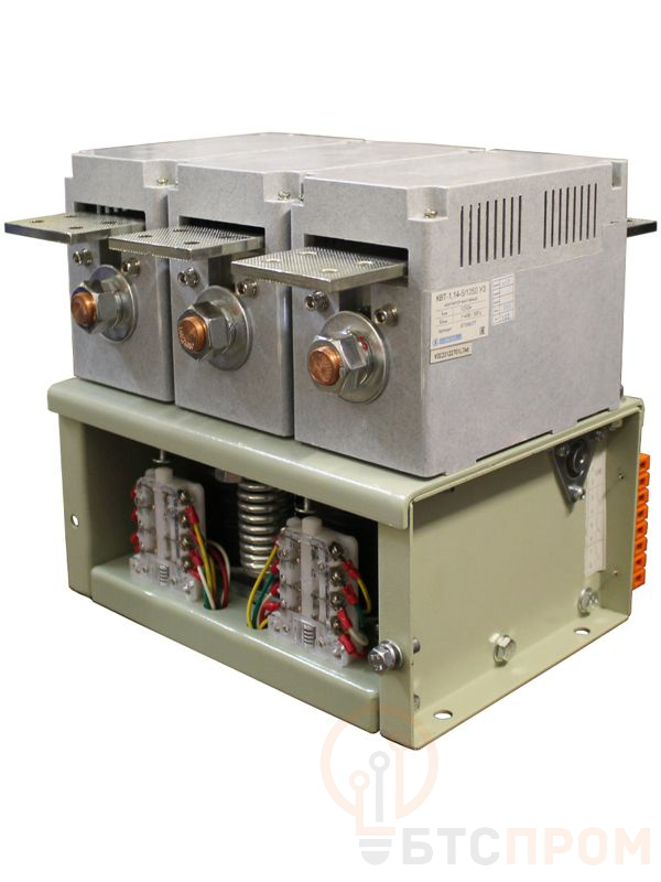 Контакторы вакуумные серии КВТ открытого исполнения с естественным воздушным охлаждением, встраиваемые в комплектные устройства, предназначены для использования в пускателях, станциях управления, для коммутации токов включения и отключения асинхронных электродвигателей с короткозамкнутым ротором и других приёмников электроэнергии в системах дистанционного управления электроприводами с тяжёлым режимом работы в цепи переменного тока 50-60 Гц, напряжением до 1140 В. Благодаря высокой электрической прочности вакуумного промежутка и отсутствию среды, поддерживающей горение дуги, электрическая дуга распадается и гаснет. * высокий коммутационный и энергетический ресурс; * высокая кратковременная нагрузочная способность для тяжелых пусков; * отсутствие открытой электрической дуги и продуктов горения, * высокое быстродействие; * максимальная пожаро- и взрывобезопасность; * низкий уровень шумов во время эксплуатации.