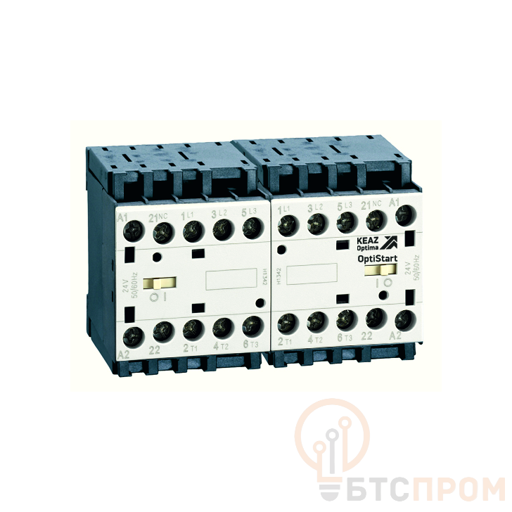 Мини-контакторы реверсивные OptiStart K-MC представляют собой компактные устройства, которые оптимально подходят для решений, где надежность при малых габаритных размерах является основным требованием. Широкий ассортимент решений и и высокие значения технических характеристик обеспечивают клиентам возможность выбрать контактор для любых областей применения, в том числе и с возможностью монтажа на печатные платы. Мини-контакторы серии OptiStart K-M выпускаются в двух исполнениях на номинальные токи от 9 до 12 А (АС-3 400 В) и до 20 А (AC-1).Новые серии контакторов OptiStart K представлены наиболее современными решениями для управления электродвигателями. Ассортимент включает в себя как классические решения с катушкой управления AC, DC или AC/DC, так и современные контакторы OptiStart K-AF с электронной системой питания катушки управления, обладающие многочисленными преимуществами по сравнению с традиционными решениями и полностью удовлетворяющие всем требованиям современного рынка.