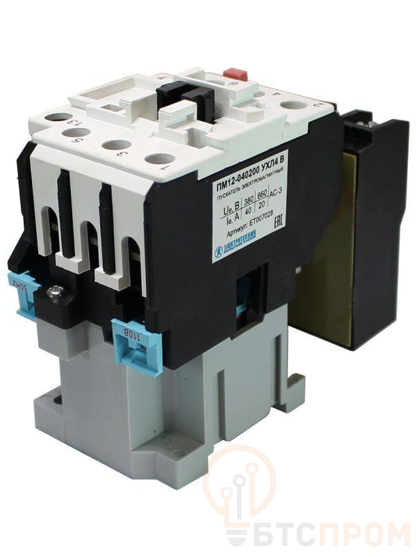 Пускатель электромагнитный ПМ12-040200 УХЛ4 В 40А 110В/50Гц 1НО IP00 нереверсивный с реле РТТ-121 28.0-40.0А Электротехник ET007028