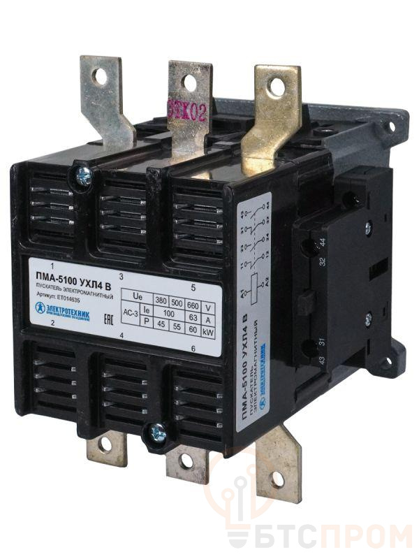 Пускатель электромагнитный ПМА-5100 УХЛ4 В 100А 110В 2НО+2НЗ IP00 нереверсивный без реле Электротехник ET014635