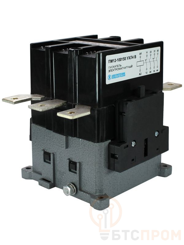 Пускатель электромагнитный ПМ12-100150 УХЛ4 от производителя "Электротехник" — это надежный аппарат для управления и распределения электроэнергии в силовых цепях. Устройство рассчитано на номинальный ток 100А и рабочее напряжение катушки управления 110В переменного тока. Коммутационная способность обеспечивается контактной системой: 2 нормально разомкнутых (2НО) и 2 нормально замкнутых (2НЗ) контакта.