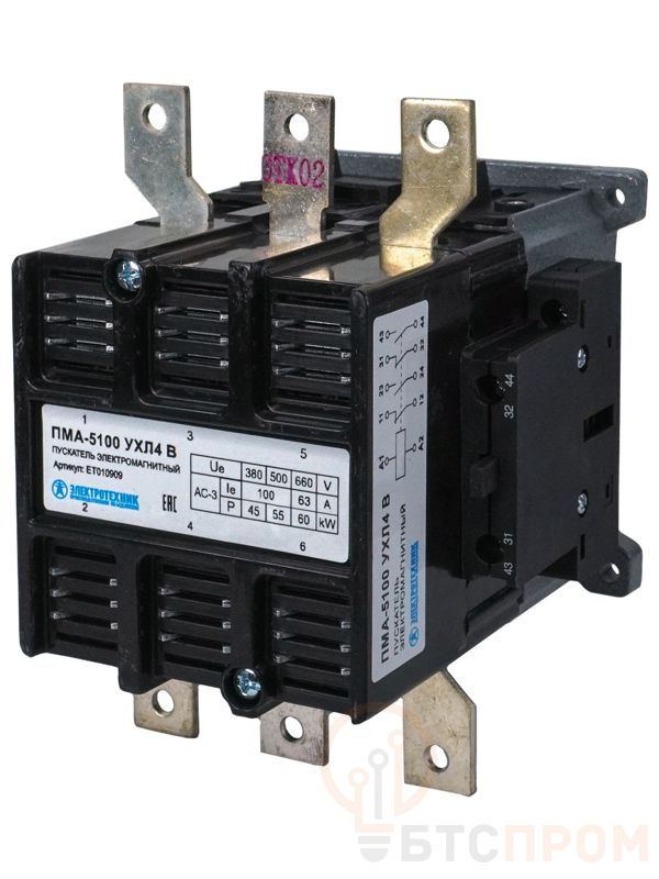 Электромагнитные пускатели серии ПМА-5000 предназначены для управления и защиты трёхфазных асинхронных электродвигателей. Они используются в электрических сетях переменного тока напряжением до 660 В и частотой 50 Гц. Основные функции и назначение пускателей: пуск, остановка и реверс электродвигателей, коммутация силовых цепей и интеграция в системы автоматики. * Пускатели ПМА-5000 отличаются высокой механической и коммутационной износостойкостью, что обеспечивает длительный срок службы даже в условиях интенсивной эксплуатации; * Соответствуют требованиям ГОСТ, предъявляемым к аппаратам промышленного назначения, обеспечивает высокую надёжность срабатывания; * Отсутствие шумов и повышенная надёжность работы; * Пускатели могут устанавливаться на DIN-рейку или крепиться винтами, что упрощает их монтаж в электрощитах и панелях управления.