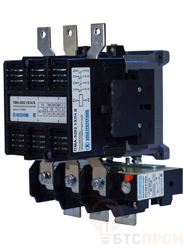 Пускатель электромагнитный ПМА-5202 УХЛ4 В 100А 220В 2НО+2НЗ IP00 нереверсивный с реле РТТ-325 85-115А Электротехник ET009636
