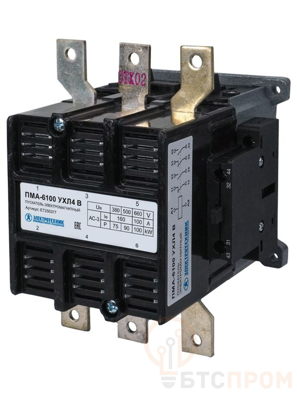 Электромагнитные пускатели серии ПМА-6000 предназначены для управления и защиты трёхфазных асинхронных электродвигателей. Они используются в электрических сетях переменного тока напряжением до 660 В и частотой 50 Гц. Основные функции и назначение пускателей: пуск, остановка и реверс электродвигателей, коммутация силовых цепей и интеграция в системы автоматики. * Пускатели ПМА-6000 отличаются высокой механической и коммутационной износостойкостью, что обеспечивает длительный срок службы даже в условиях интенсивной эксплуатации; * Соответствуют требованиям ГОСТ, предъявляемым к аппаратам промышленного назначения, обеспечивает высокую надёжность срабатывания; * Отсутствие шумов и повышенная надёжность работы; * Пускатели могут устанавливаться на DIN-рейку или крепиться винтами, что упрощает их монтаж в электрощитах и панелях управления.