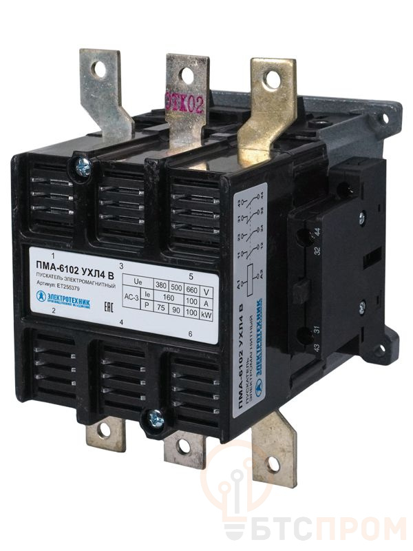 Пускатель магнитный ПМА-6102 УХЛ4 от производителя "Электротехник" – это надежный аппарат для управления и распределения электроэнергии в промышленных сетях. Номинальный ток: 160 А. Рассчитан на работу в цепях переменного тока с напряжением до 380 В. Коммутационная схема контактов: 2 нормально разомкнутых (2НО) и 2 нормально замкнутых (2НЗ). Исполнение без встроенного реле напряжения. Степень защиты IP00 требует установки в защищенных щитах и шкафах. Климатическое исполнение УХЛ4 гарантирует стабильную работу в умеренном и холодном климате. Применяется для дистанционного пуска, остановки и реверса мощных трехфазных электродвигателей, в системах автоматизации производственных линий, насосных станций и вентиляционных установок.