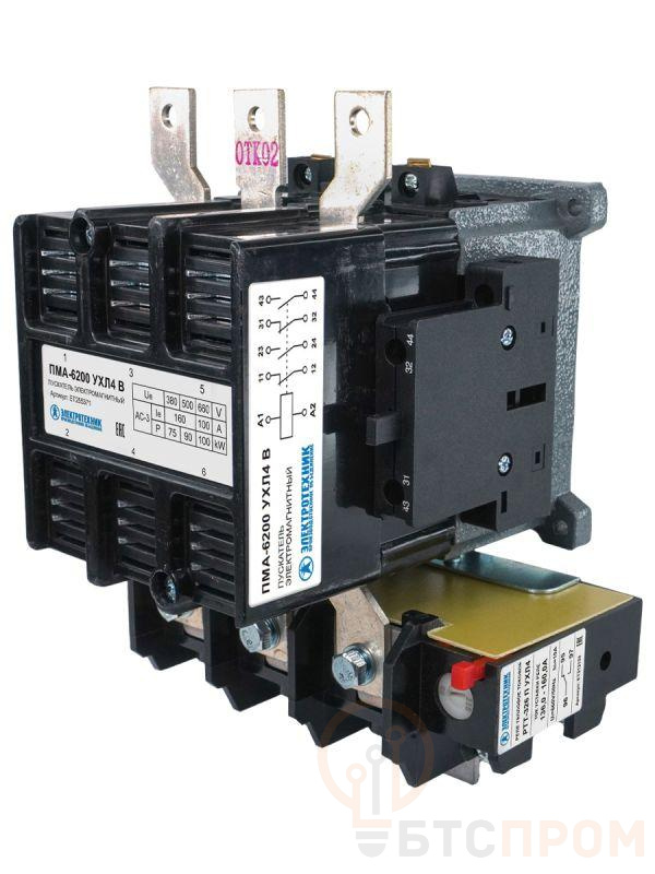 Пускатель ПМА-6200 УХЛ4 В 160А кат. 220В 2НО+2НЗ IP00 с реле РТТ-326 136-160А Электротехник ET255371