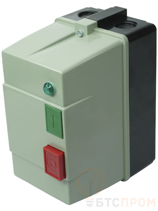 Корпус пускателя выполнен из прочного пластика и имеет степень защиты IP54, что гарантирует устойчивость к попаданию пыли и брызг воды, позволяя использовать его в условиях повышенной запыленности и влажности. На лицевой панели расположены кнопки управления "ПУСК" и "СТОП", а также сигнальная лампа для визуального контроля состояния оборудования.