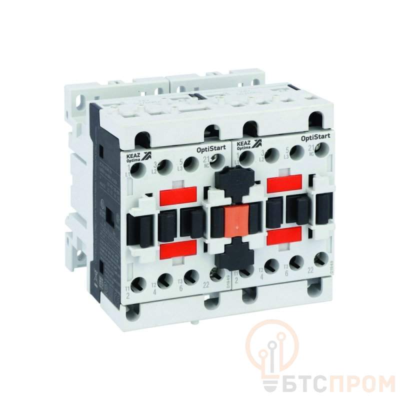 Реверсивная сборка контакторов OptiStart K-FC-18-30-01-A048 от бренда КЭАЗ представляет собой готовое решение для управления трехфазными асинхронными электродвигателями. Данная модель обеспечивает плавный пуск, остановку и реверс вращения двигателя, что критически важно для механизмов, требующих движения в двух направлениях.