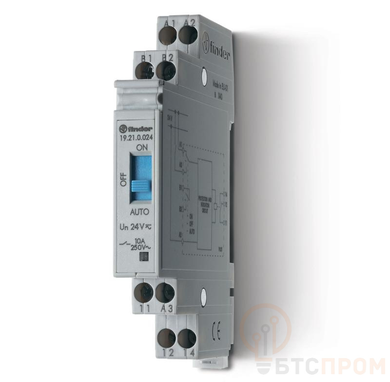 Модуль управления Авто-Вкл-Выкл 1CO 10А 24В AC/DC монтаж на рейку 35мм 11.2мм IP20 FINDER 192100240000