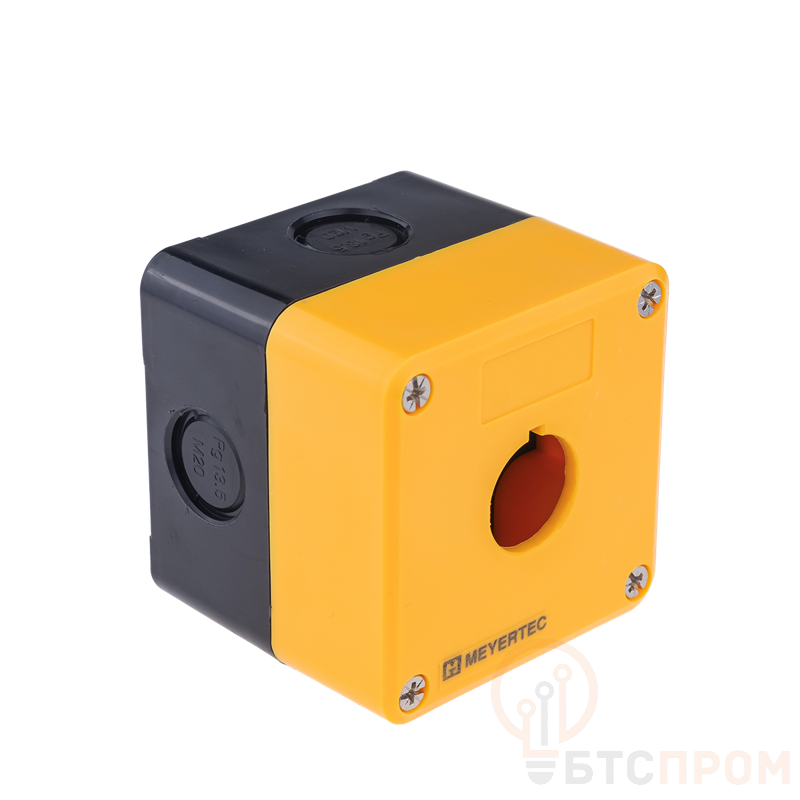 Модель выполнена в ярком желтом цвете для лучшей визуальной идентификации на оборудовании. Конструкция предусматривает одно монтажное отверстие для установки кнопки, переключателя или ключа. Корпус изготовлен из прочного термостойкого пластика, устойчивого к механическим воздействиям, маслам и химическим веществам. Основная сфера применения — комплектация станков, шкафов управления, конвейерных систем и другого промышленного оборудования, где требуется организация местного управления с высокой степенью защиты.