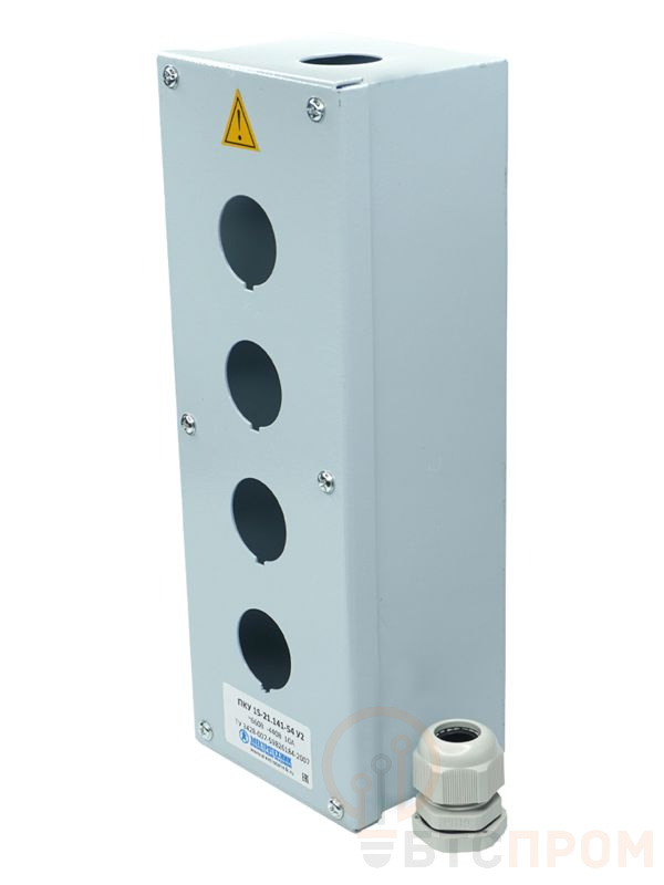 Производим и поставляем. Товар сертифицирован. Корпус ПКУ 15-21 представляет собой металлический короб с порошковым покрытием, состоящий из основания с отверстием под сальник типа PG, и крышки с отверстиями для установки выключателей типа ВК, КЕ, переключателей типа ПЕ и светосигнальной арматуры типа СКЛ. Размер посадочного места под аппарат - O 30 мм.