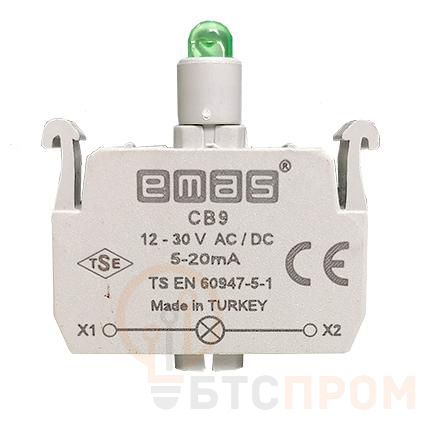 Блок-контакт EMAS CB9 с зеленой светодиодной подсветкой — это надежный и современный компонент для систем управления и сигнализации. Устройство рассчитано на широкий диапазон напряжений от 12 до 30 В, что позволяет его использовать в цепях как переменного (AC), так и постоянного (DC) тока. Данная универсальность делает его идеальным решением для промышленных щитов управления, станков, контроля технологических процессов и световой индикации состояния оборудования.