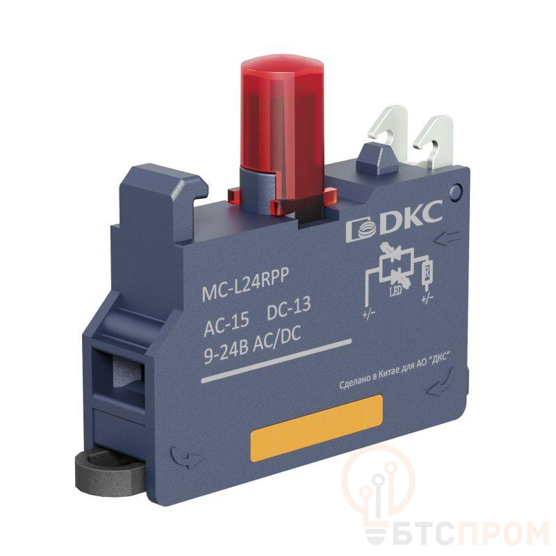 Контактный блок с клеммным безвинтовым зажимом и светодиодом на 9-24В, красный, служит для индикации и контроля состояния системы. Корпус из полиамида и износостойкий диод повышают видимость и долговечность, улучшая безопасность и оперативность работы с оборудованием.