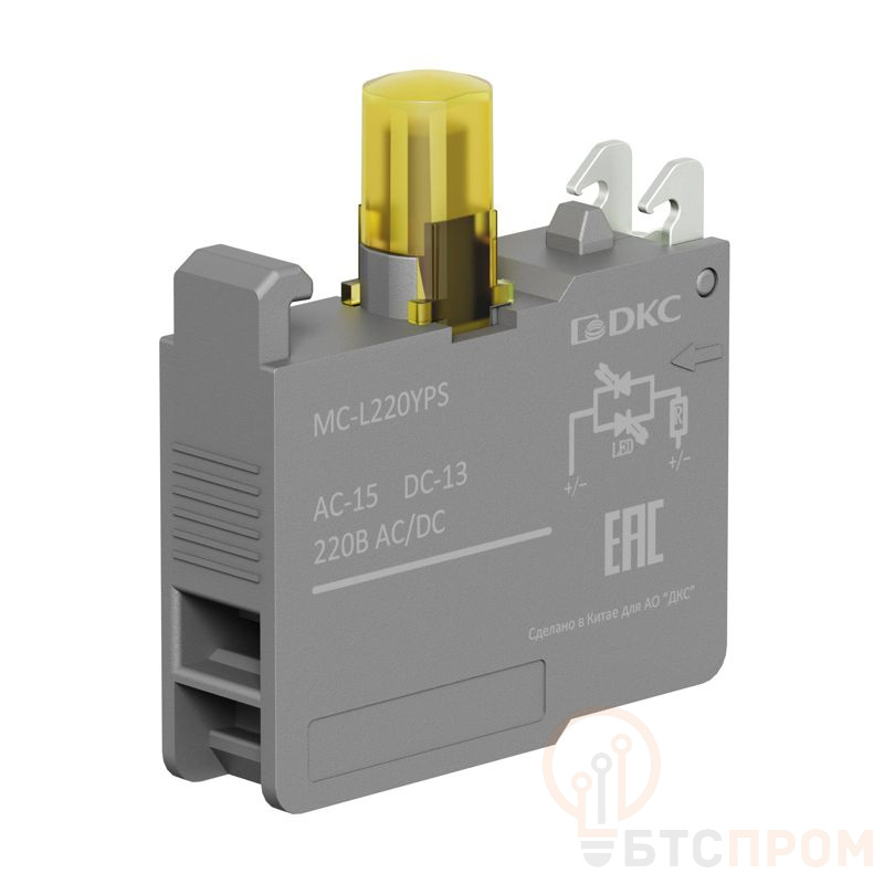 Контактный блок с винтовым зажимом и светодиодом на 220 В жёлтого цвета. Жёлтый сигнал акцентирует внимание на изменениях в состоянии системы. Крепление под винт гарантирует надёжное соединение и стабильную работу.