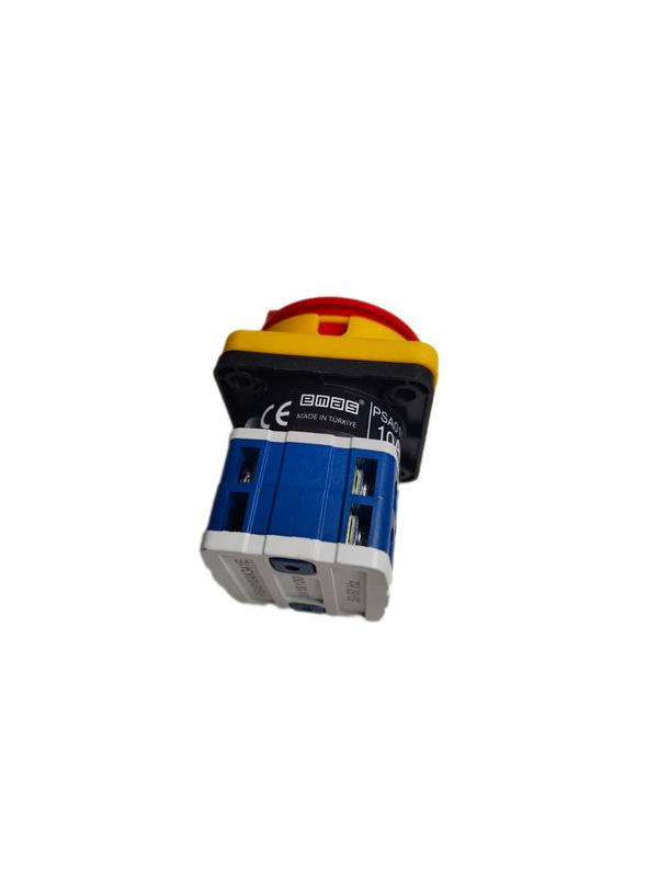 Переключатель двухпозиционный аварийного типа трехфазный (0-1) 10А. Механическая стойкость не менее 100 000 операций. Электрическая стойкость не менее 50 000 операций. Рабочая температура -5/+40 °C. Степень защиты IP54. Отключающая способность З кА. Номинальное напряжение, Ue 400 В переменного тока. Номинальный ток, 1е 20-100 А. Номинальное сопротивление изоляции не менее 10 МОм (500 В постоянного тока). Сопротивление контактов не более 15 Мом. Диэлектрическое сопротивление 1500 В переменного тока (1 мин)