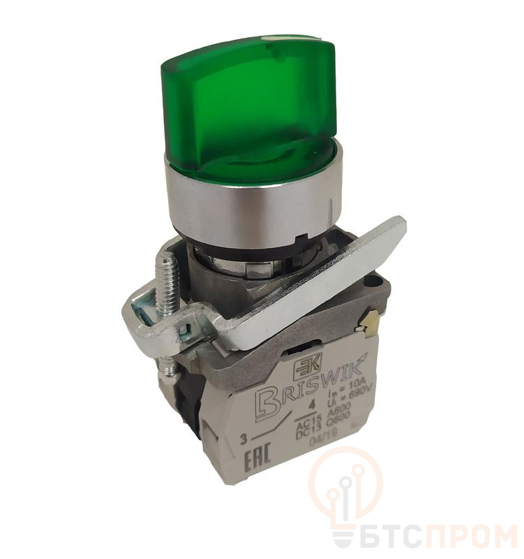 Переключатель КПЕ-4120-РЛС 220В рукоятка на три положения с самовозвратом с индикацией основание метал. 2з+0р 10А диаметр посадочного отверстия 22мм УХЛ3 IP40 зел. Реле и Автоматика A8012-34129641