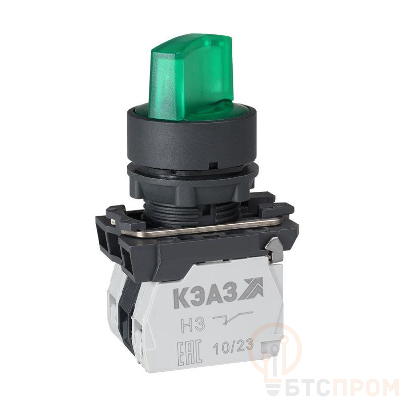 Переключатель КПЕ2120РЛ 220В зел. 2но+0нз ручка фикс 3поз индикатор IP40 КЭАЗ 354430 фото в каталоге от BTSprom.by