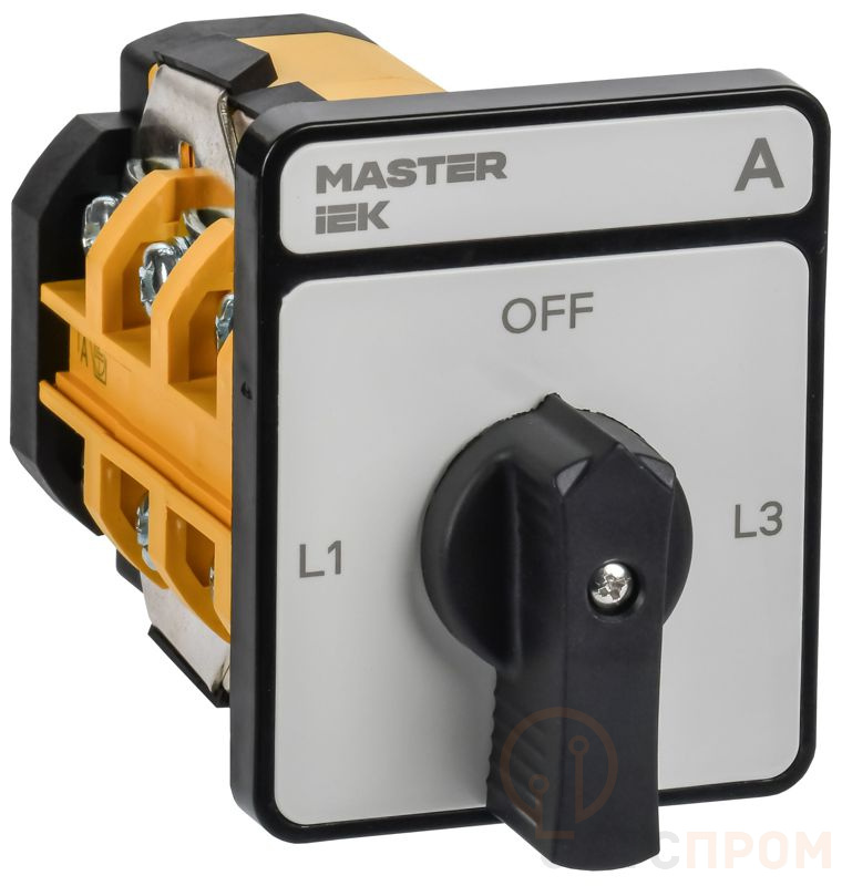 Переключатель кулачковый MI-CS10-063-098-K02 от IEK MASTER — это надежный аппарат ручного управления, предназначенный для коммутации цепей постоянного и переменного тока. Номинальный ток устройства составляет 63А, что делает его подходящим для применения в силовых распределительных цепях промышленного назначения.