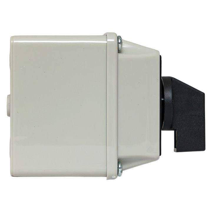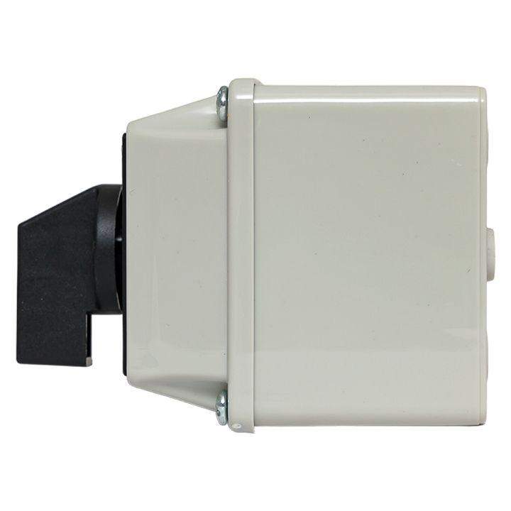 • ПК-3 – трехфазный кулачковый переключатель в защитном боксе IP 54 (выключатель нагрузки). Переключатели ПК-1 и ПК-2 выпускаются с передним креплением. Устанавливаются на переднюю панель щитового оборудования, пульт управления и т. п. Переключатели ПК-3 с задним креплением устанавливаются на монтажную панель.
