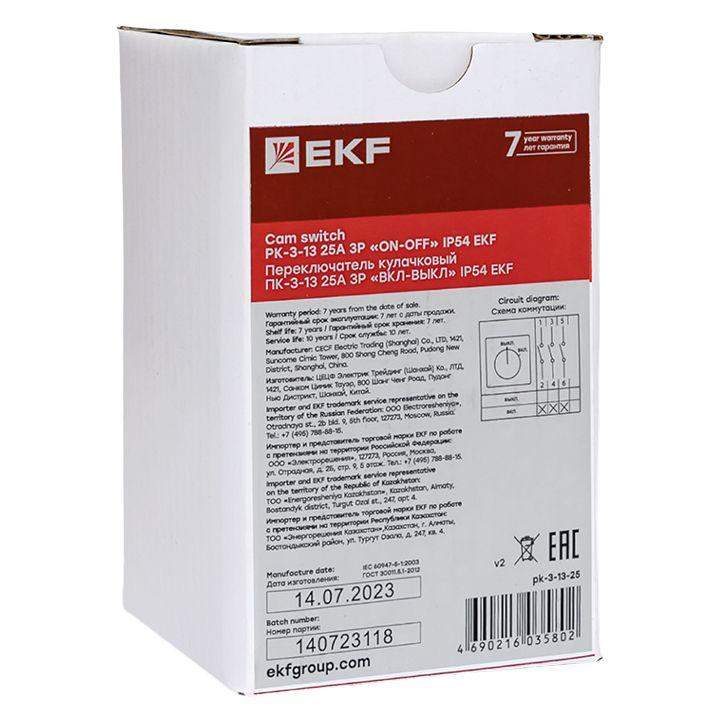 –Переключатель кулачковый ПК-3-13 3П 25А "ВКЛ-ВЫКЛ" IP54 EKF pk-3-13-25