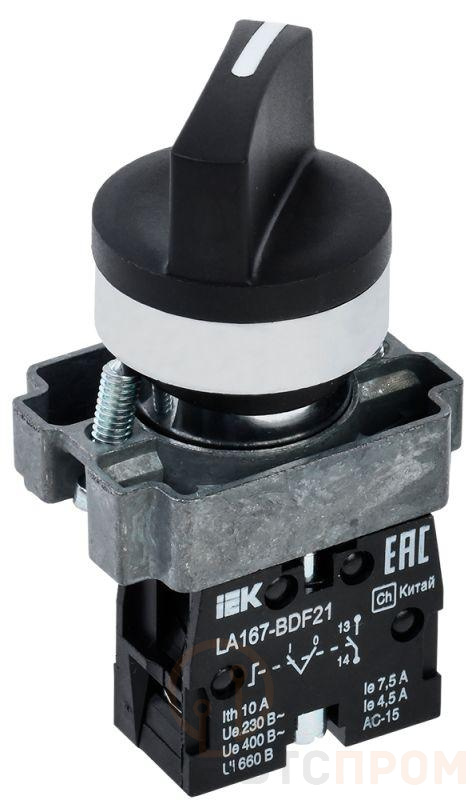 Переключатель LA167-BDF21 — это надежный двухпозиционный аппарат от бренда KARAT (IEK), предназначенный для коммутации электрических цепей управления и сигнализации. Модель обладает одной нормально разомкнутой контактной группой (1НО) и выполнен в классическом черном корпусе.