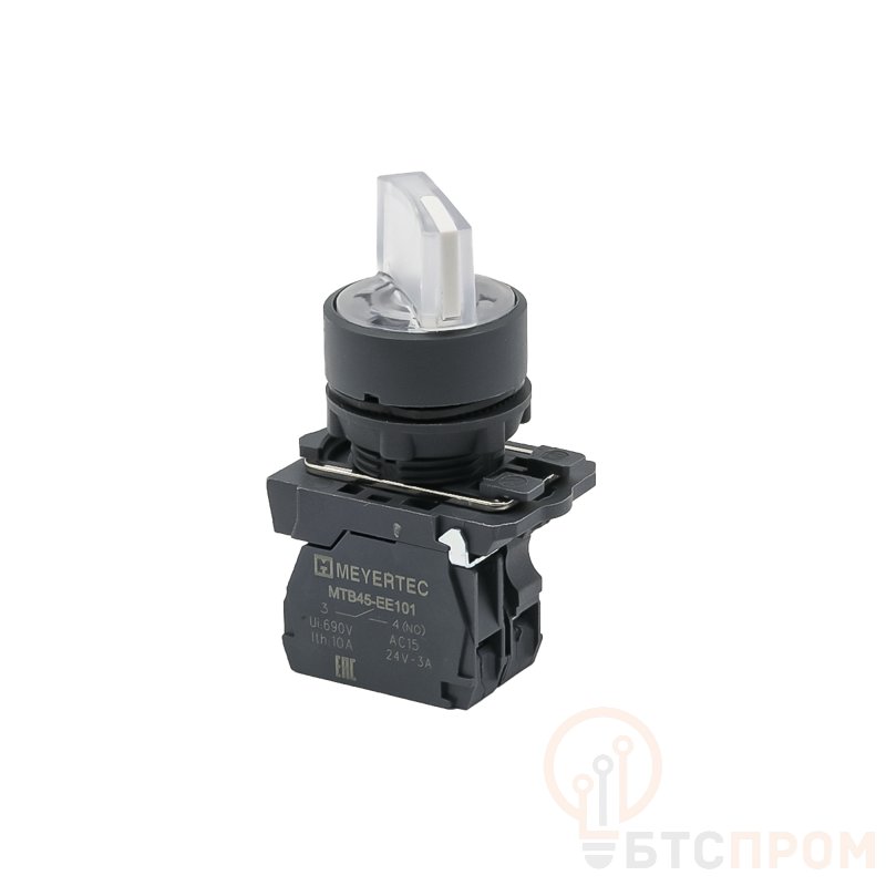 Переключатель на 2 положения с фиксацией и подсветкой 1NO 220В AC/DC IP65 пластик MTB5-AK21713 бел. ОВЕН 137278