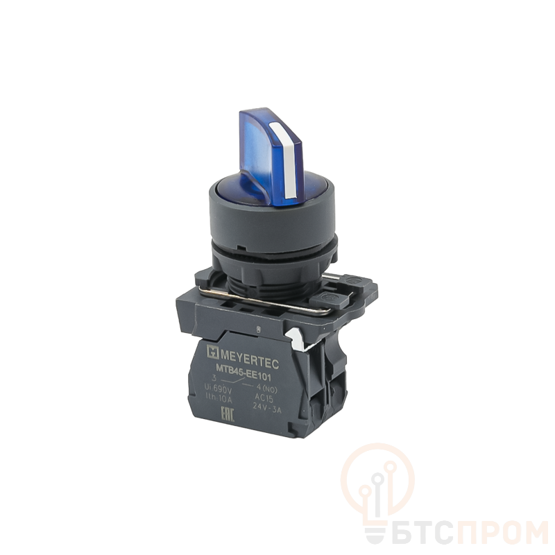 Переключатель на 2 положения с фиксацией и подсветкой 1NO 220В AC/DC IP65 пластик MTB5-AK26713 син. ОВЕН 137282