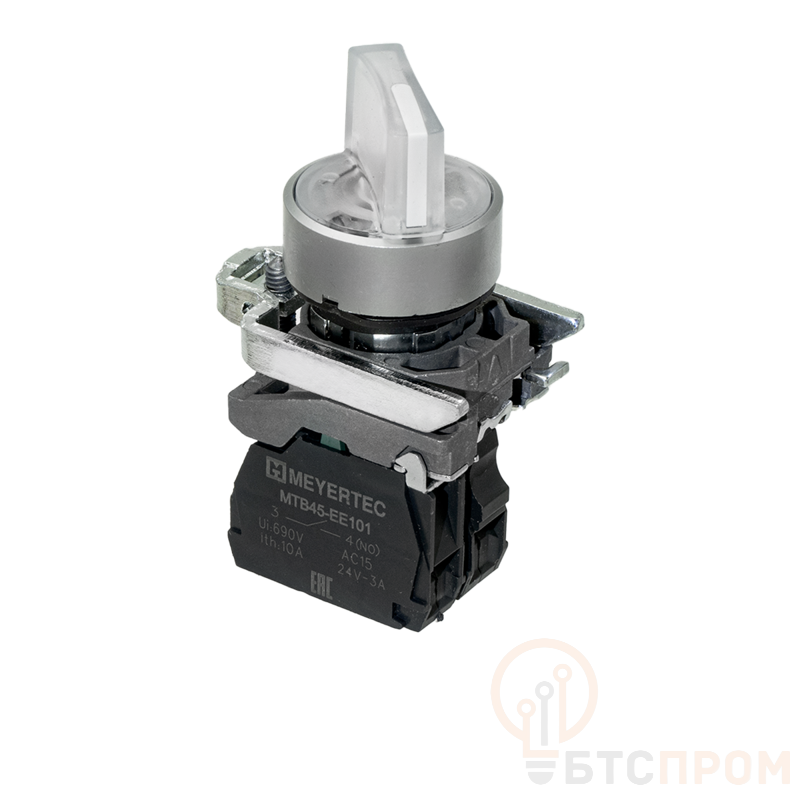 Переключатель на 2 положения с фиксацией и подсветкой 1NO 24В AC/DC IP65 металл MTB4-BK21711 бел. ОВЕН 137174