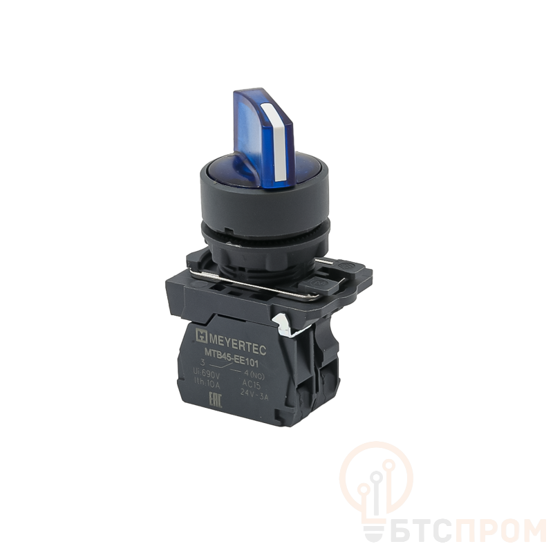 Переключатель на 2 положения с фиксацией и подсветкой 1NO 24В AC/DC IP65 пластик MTB5-AK26711 син. ОВЕН 137287