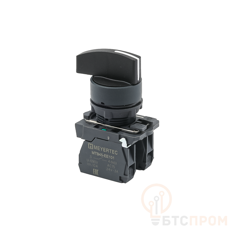 Ключевая особенность — контактная группа с 2 нормально разомкнутыми (2NO) контактами, обеспечивающая необходимую гибкость при построении схем управления. Корпус устройства выполнен из прочного пластика, что гарантирует механическую стойкость и электроизоляционную безопасность. Переключатель монтируется на дверцу электрошкафа с помощью круглого крепления.